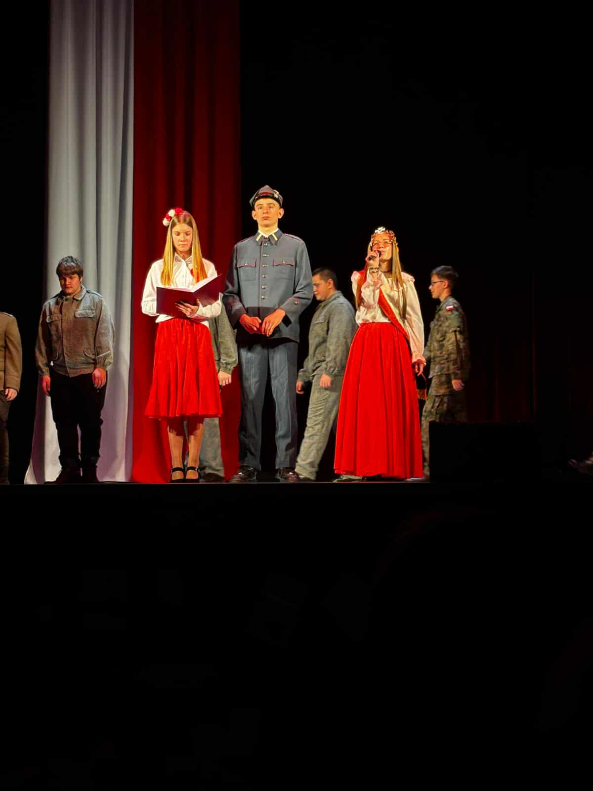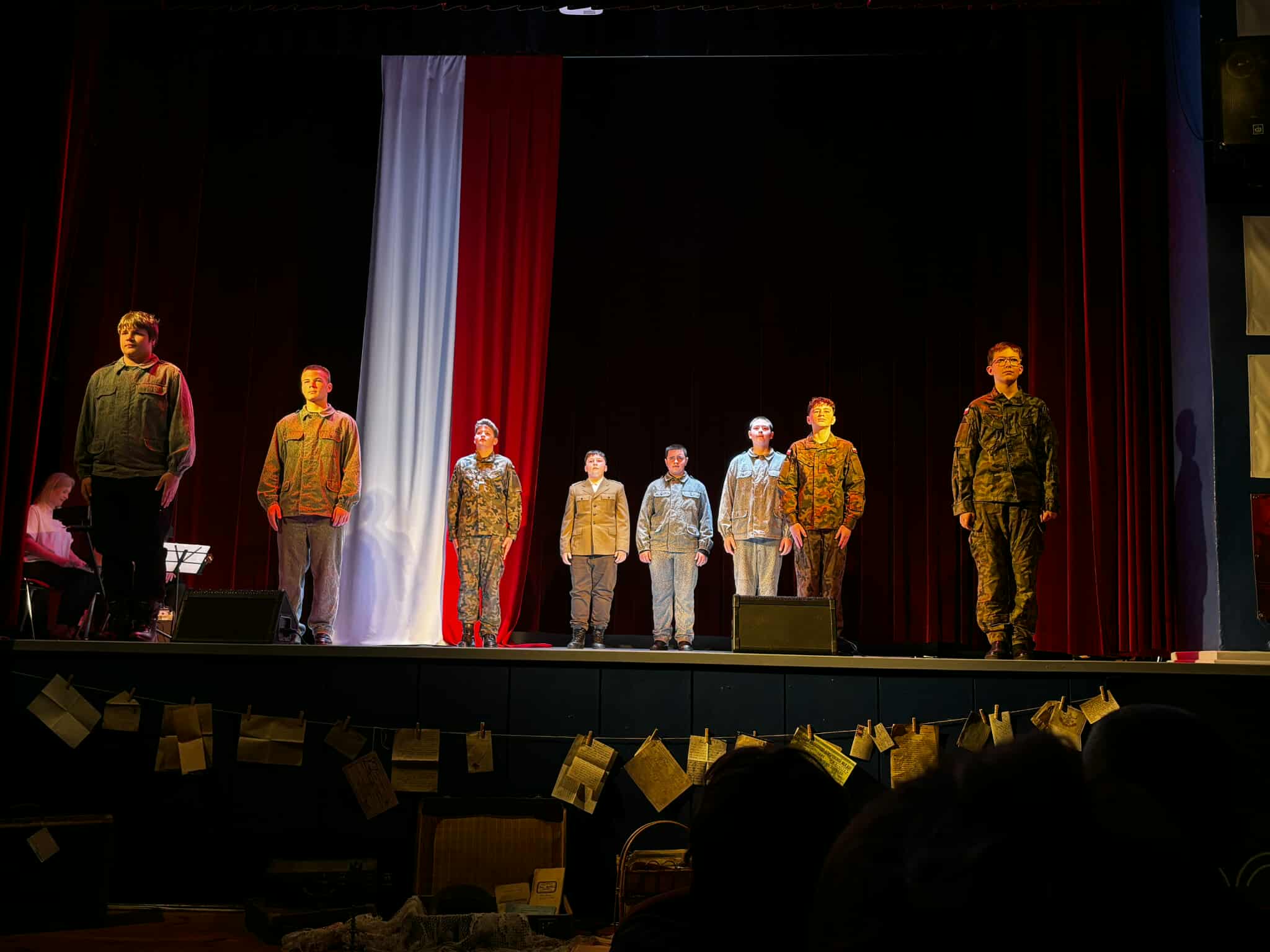 Występ był pełen emocji. Widzowie mogli zobaczyć symboliczny taniec śmierci, żołnierzy walczących o wolność, obrazy szkoły pod zaborem pruskim i losy uchodźców. Pieśni patriotyczne i fragmenty wierszy Norwida oraz Bocheńskiej nadały całości głębi i wzruszającego tonu.