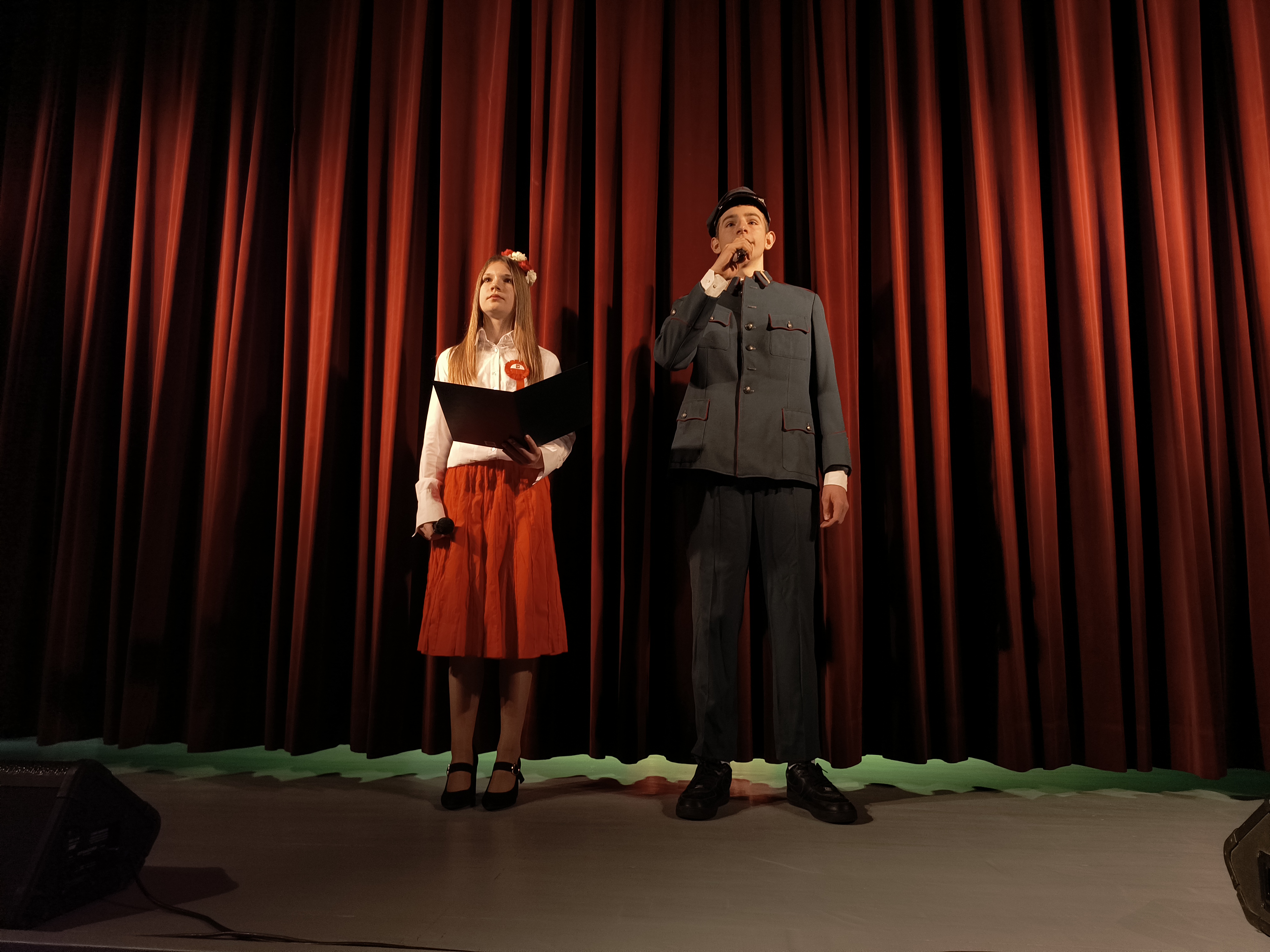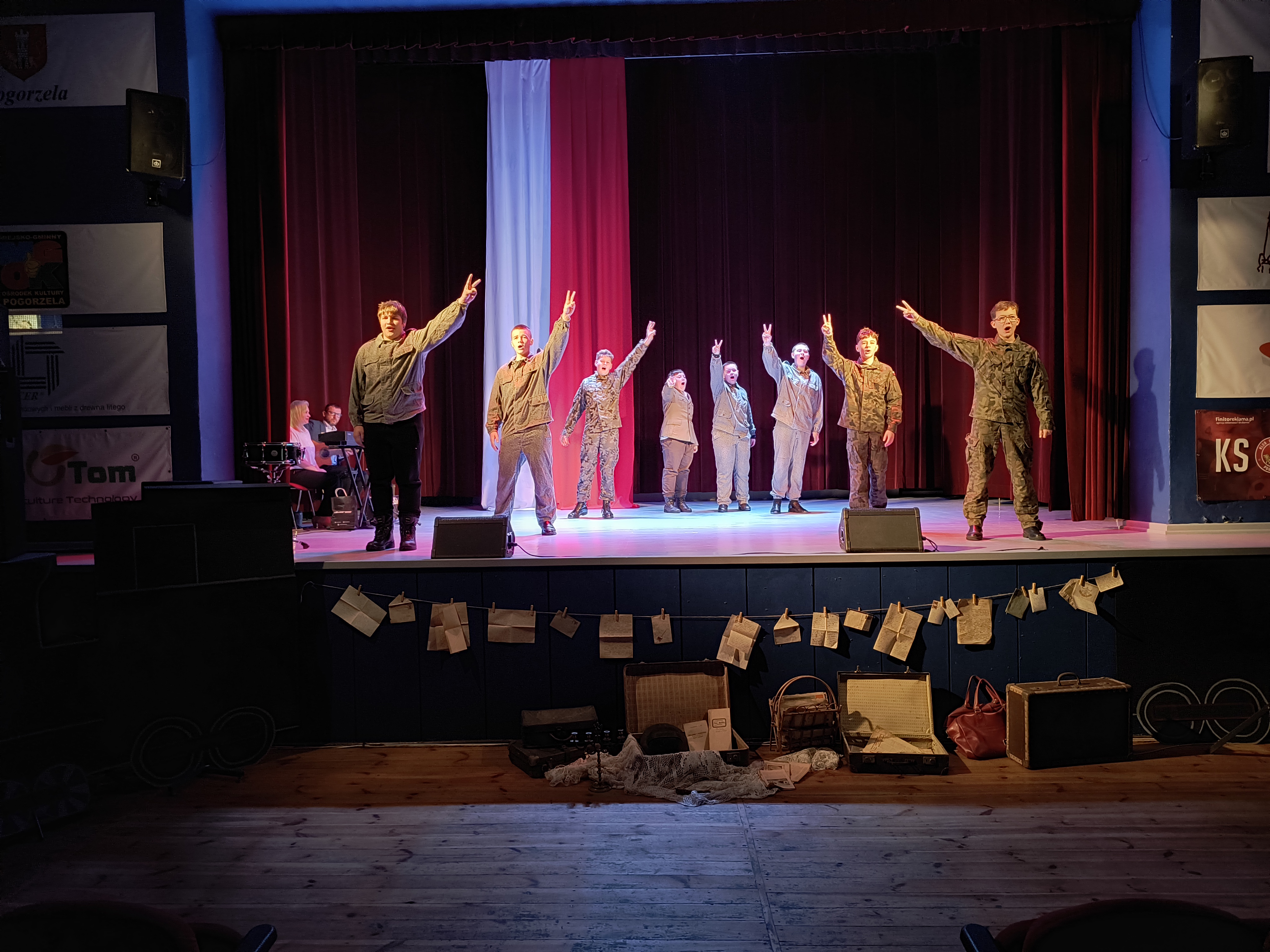 W niedzielne popołudnie (16 listopada) na scenie w MGOK-u odbyło się niezwykłe widowisko – montaż słowno-muzyczny „Pociąg do Wolności” przygotowany przez uczniów kółka teatralnego, które działa w SP w Pogorzeli. Występ uświetnili laureaci szkolnego konkursu piosenki patriotycznej. Uczniowie zabrali publiczność w podróż przez 123 lata historii Polski – od rozbiorów, przez powstania i Wielką Wojnę, aż po upragnioną niepodległość.