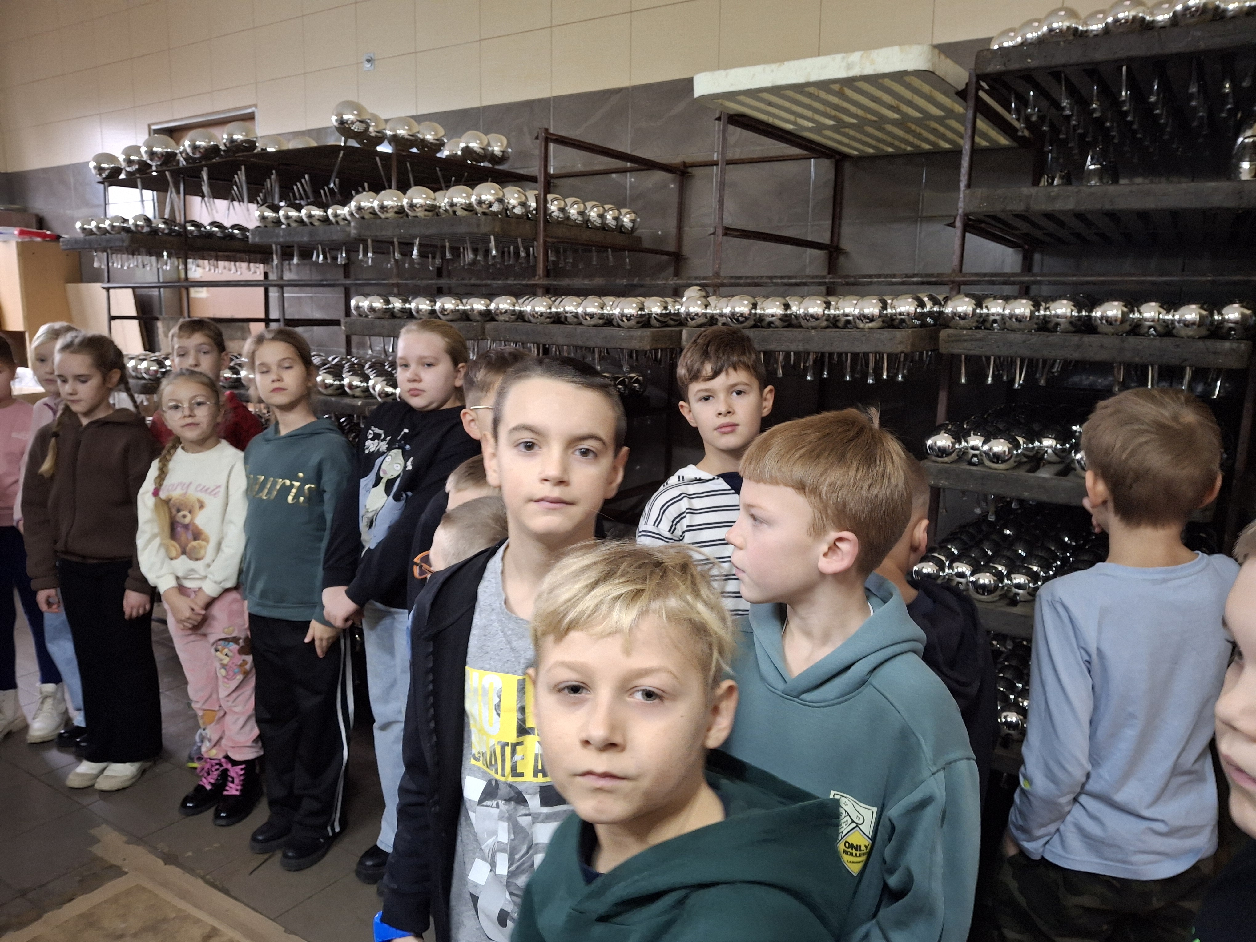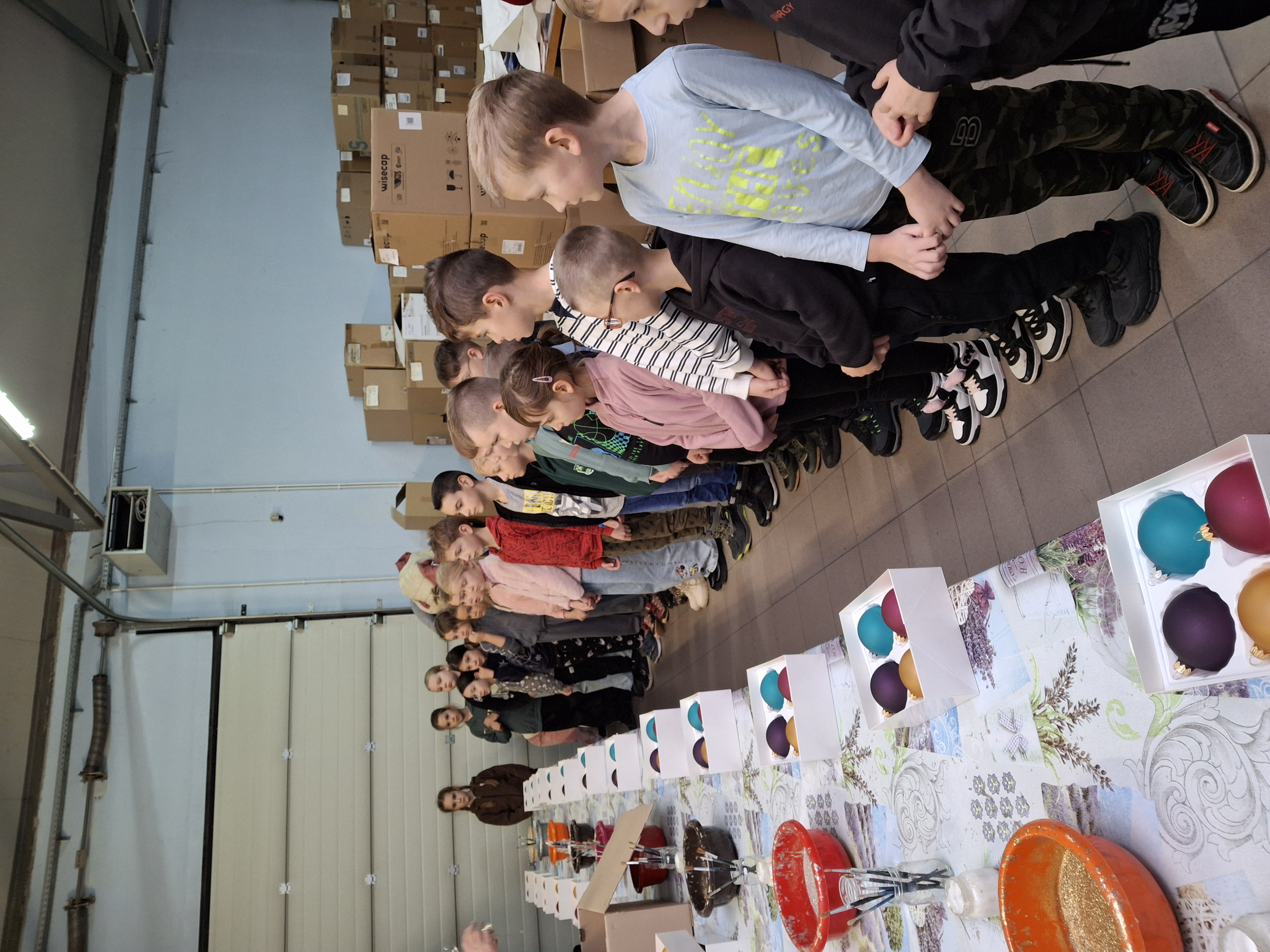 Na początku dzieci dowiedziały się, jak wygląda praca w fabryce i jakie rodzaje ozdób świątecznych są tam wytwarzane. Następnie uczniowie zwiedzili kolejne stanowiska produkcyjne. Z zainteresowaniem obserwowali proces dmuchania szkła, podczas którego powstają puste, delikatne formy bombek o różnorodnych kształtach. Kolejnym etapem było posrebrzanie wnętrza bombek, które nadaje im charakterystyczny połysk. Duże wrażenie zrobiła na dzieciach również pracownia, w której odbywa się ręczne malowanie i zdobienie wzorów – zarówno klasycznych, jak i bardziej nowoczesnych.